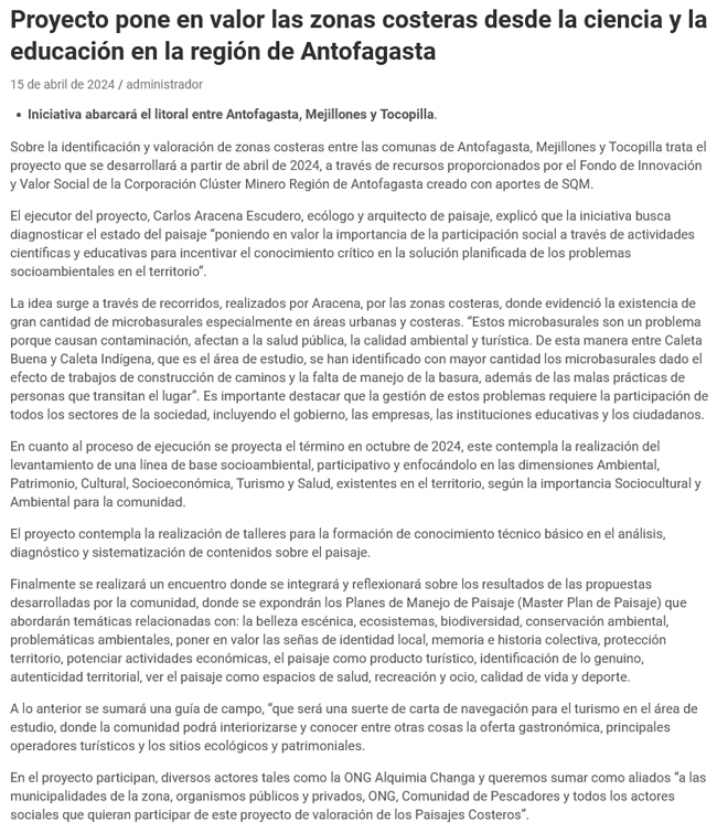 Proyecto pone en valor las zonas costeras desde la ciencia y la educación en la región de Antofagasta - (elmejillonino.cl)