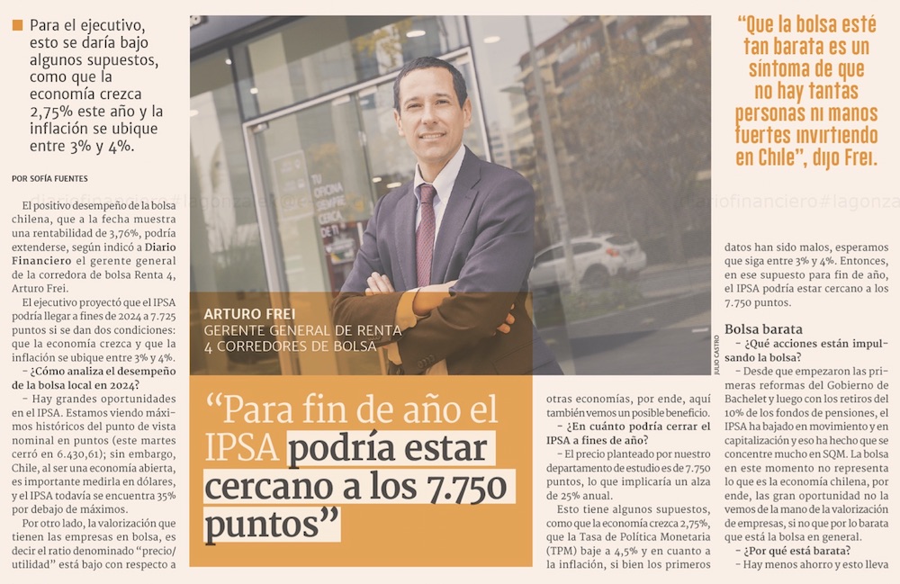 Arturo Frei, gerente general de Renta 4 Corredores de Bolsa: "Para fin de año el IPSA podría estar cercano a los 7.750 puntos" - (DF Online)