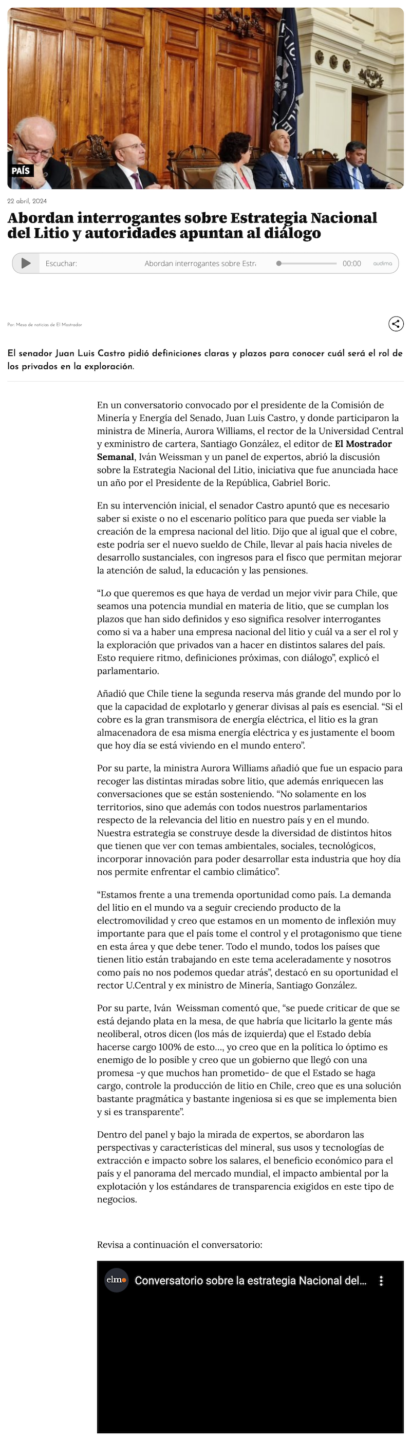 Conversatorio sobre la estrategia Nacional del Litio “Quo Vadis” - (El Mostrador)