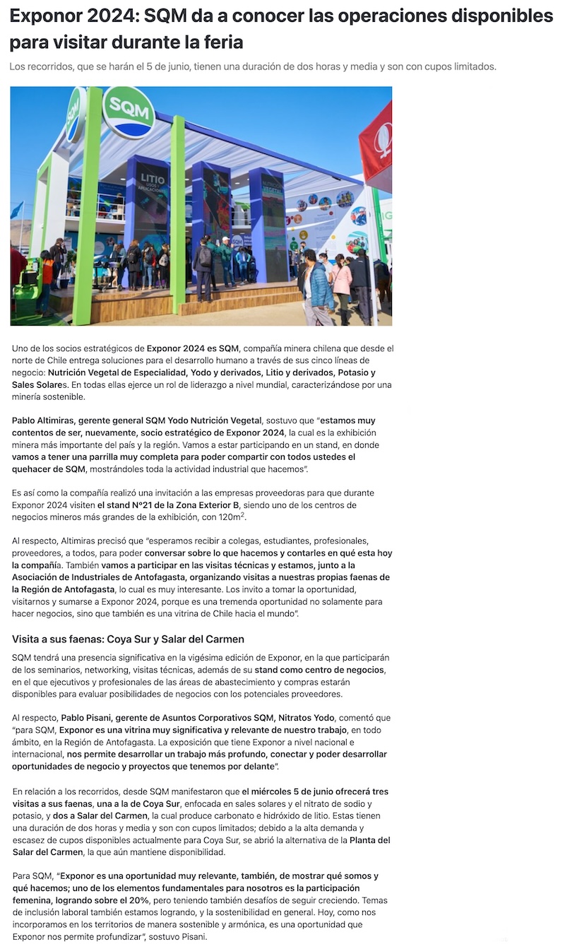 SQM estará en EXPONOR 2024 como centro de negocios - (radioua.cl)