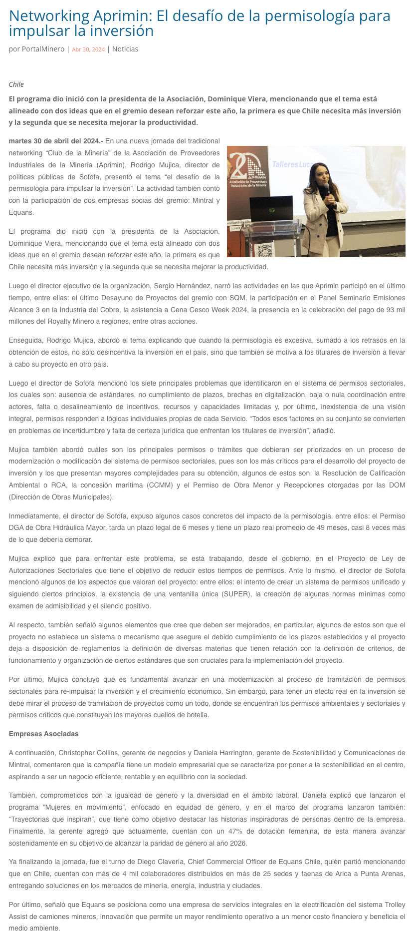 Networking Aprimin: El desafío de la permisología para impulsar la inversión - (tierramarillano.cl)