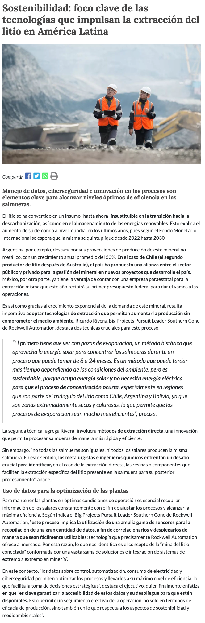Sostenibilidad: foco clave de las tecnologías que impulsan la extracción del litio en América Latina - (portalinnova.cl)