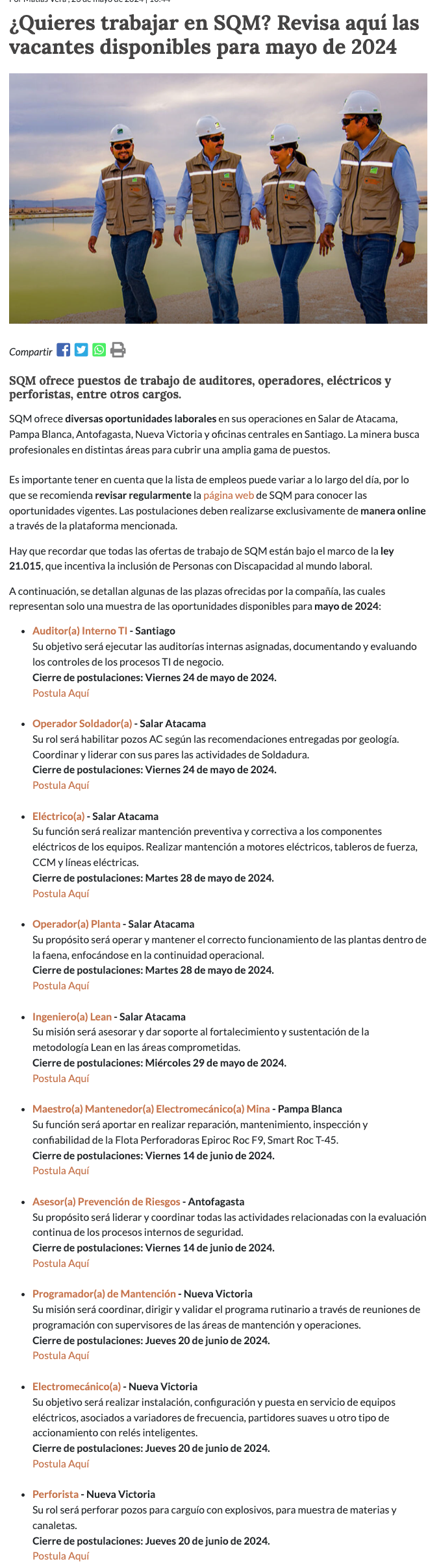 ¿Quieres trabajar en SQM? Revisa aquí las vacantes disponibles para mayo de 2024 - (redimin)