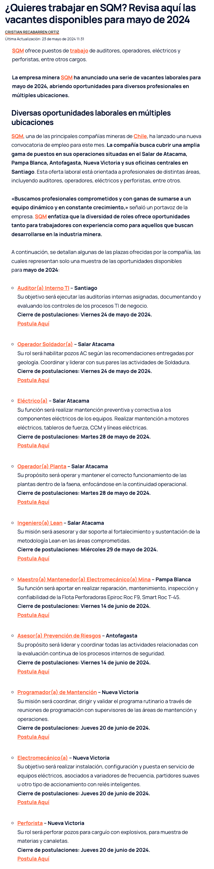 ¿Quieres trabajar en SQM? Revisa aquí las vacantes disponibles para mayo de 2024 - (reporteminero)