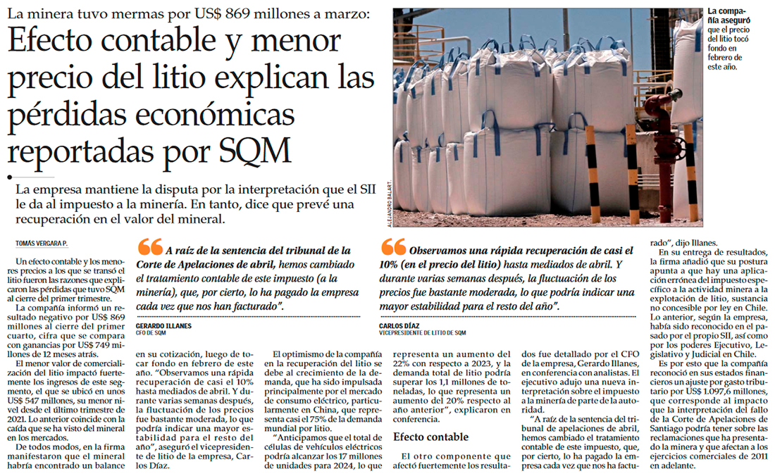 SQM registra pérdidas en el primer trimestre por caída de precios y ajuste tributario - (bloomberglinea.com)