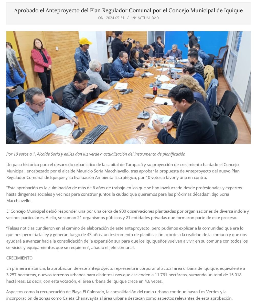 Concejo Municipal de Iquique aprobó anteproyecto de Plan Regulador Comunal - (tarapacaonline)