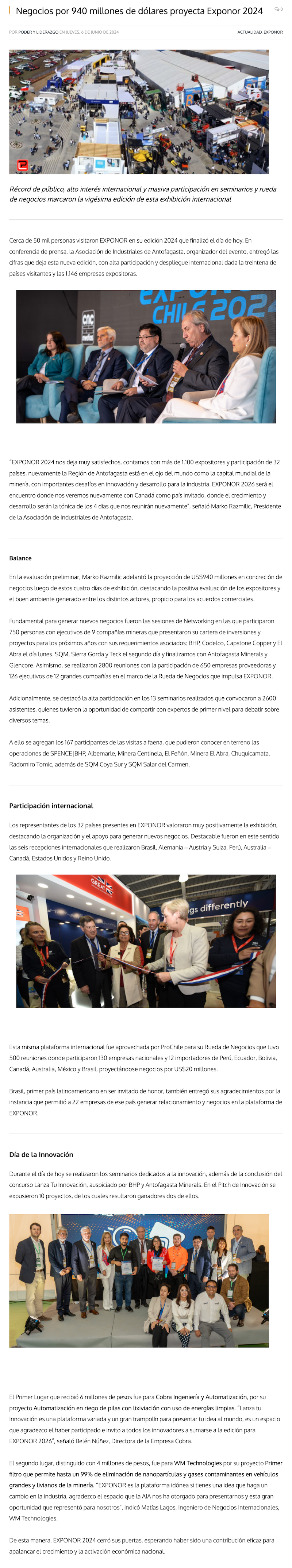 Negocios por US$940 millones proyecta Exponor 2024 - (timeline)