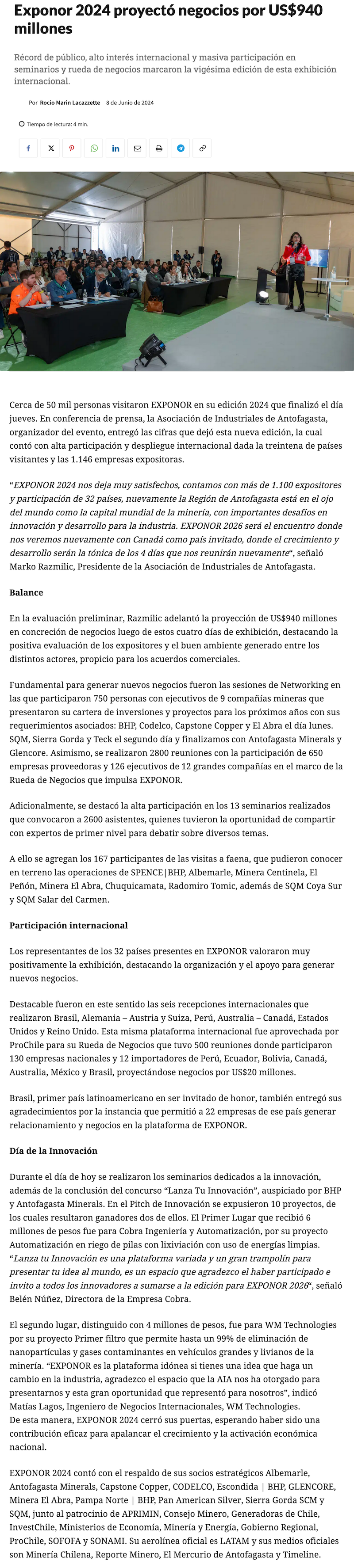 Exponor 2024 proyectó negocios por US$940 millones - (diarioantofagasta)