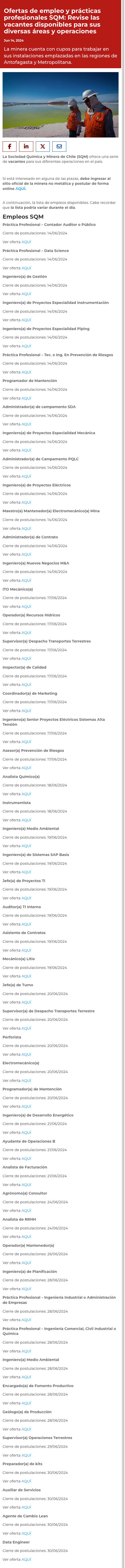 Ofertas de empleo y prácticas profesionales SQM: Revise las vacantes disponibles para sus diversas áreas y operaciones - (Maray Online)