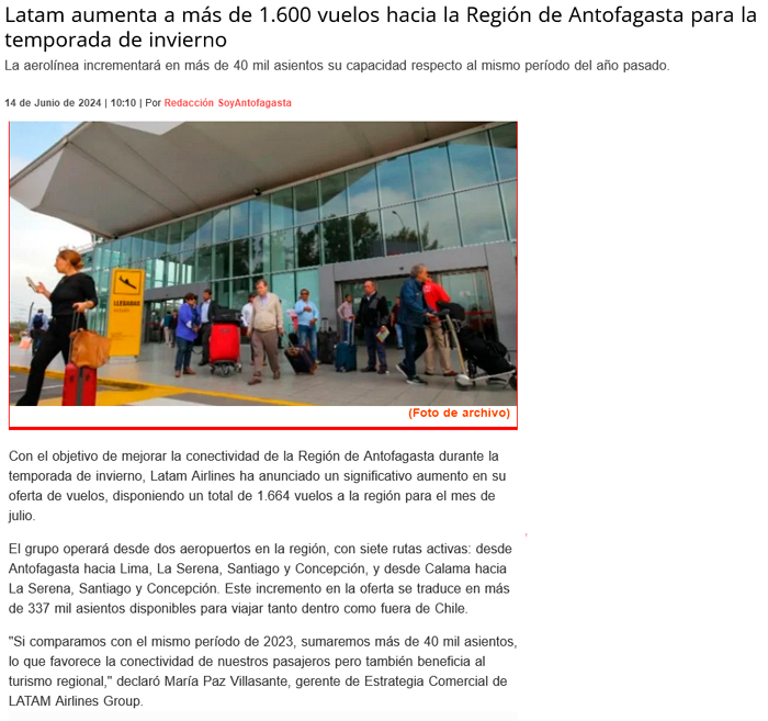 Latam tendrá más de 1.600 viajes a la región durante el invierno - (La Estrella)