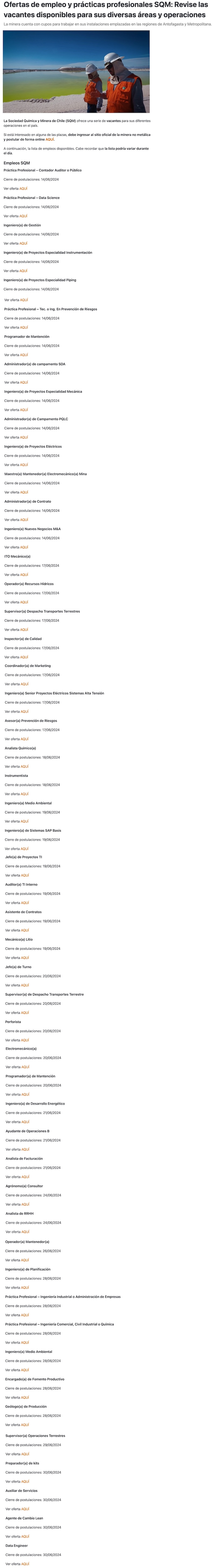 Ofertas de empleo y prácticas profesionales SQM: Revise las vacantes disponibles para sus diversas áreas y operaciones - (mch.cl)