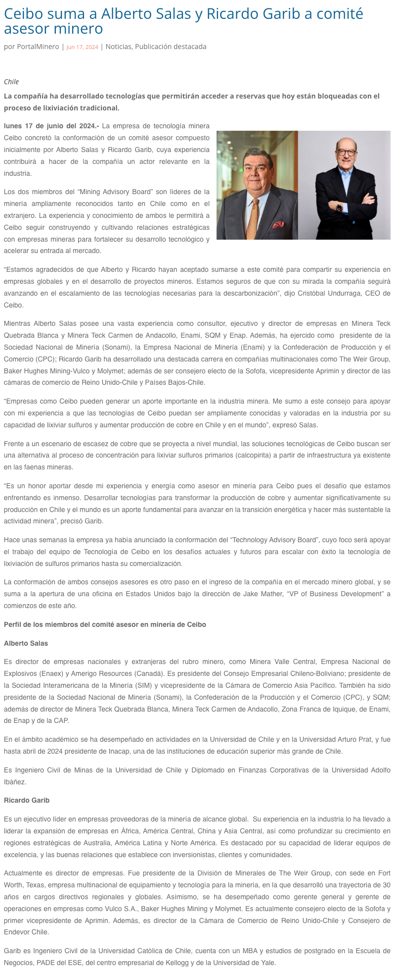 Ceibo suma a Alberto Salas y Ricardo Garib a comité asesor minero - (reporteminero)