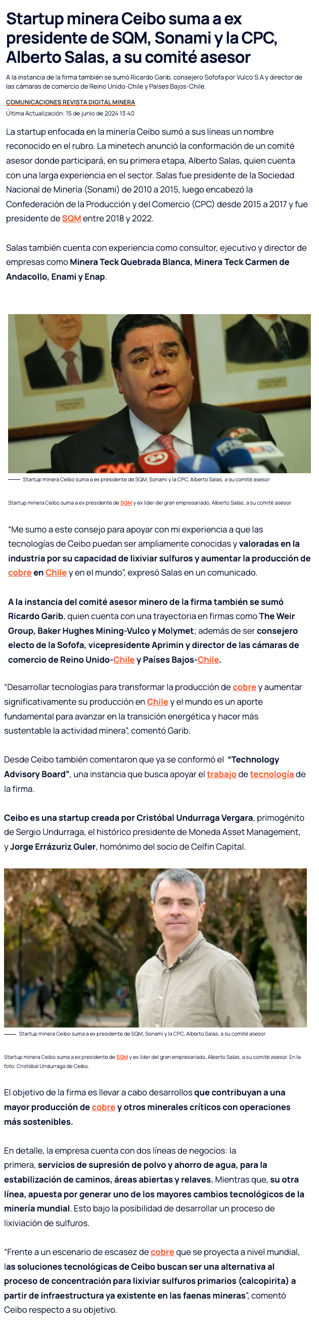 Ceibo suma a Alberto Salas y Ricardo Garib a comité asesor minero - (reporteminero)
