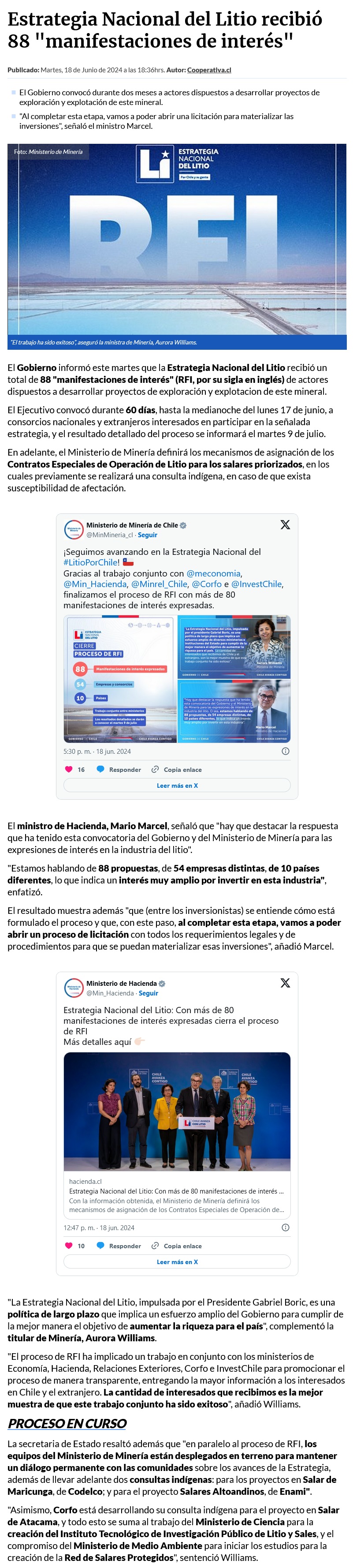 Estrategia Nacional del Litio: Con más de 80 manifestaciones de interés expresadas cierra el proceso de RFI - (elperiodista.cl)