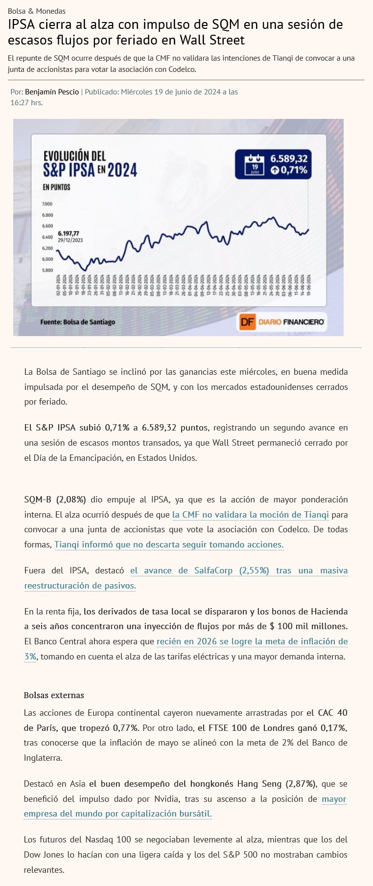 Acciones de SQM avanzan tras decisión de la CMF e impulsan al IPSA - (La Tercera Online)