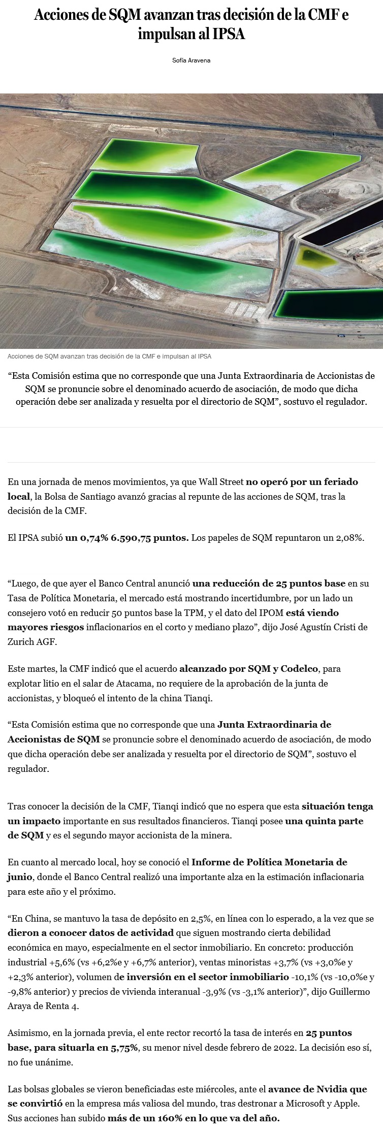 Acciones de SQM suben tras fallo de la CMF e impulsan al Ipsa - (Pulso)