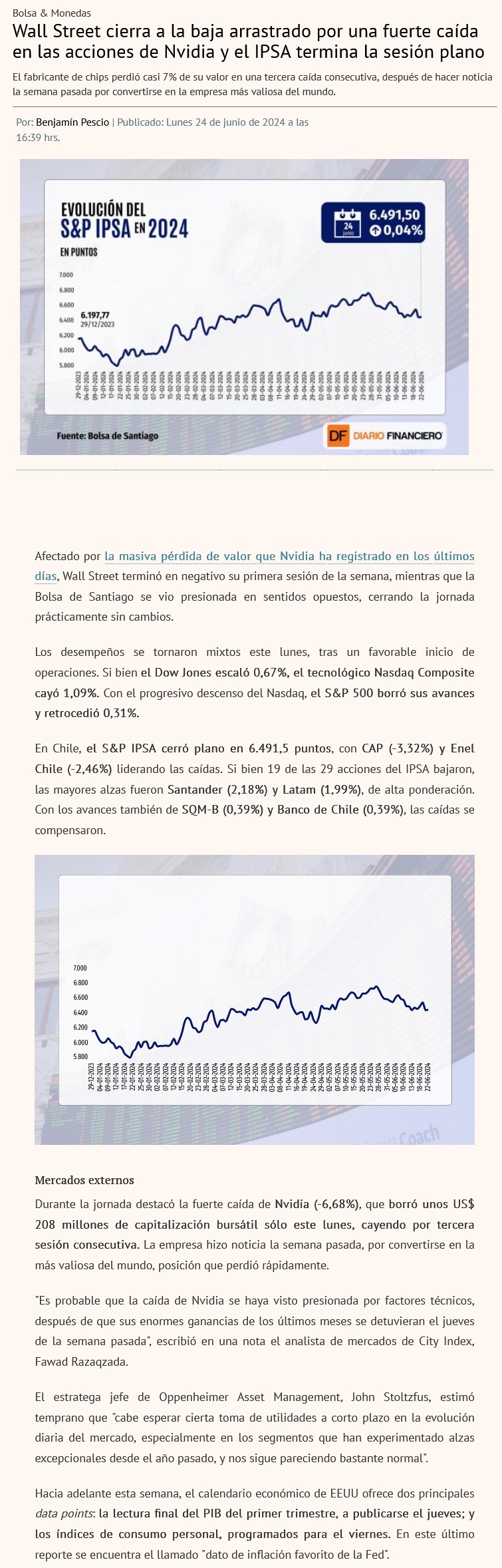 Mercados globales: Acciones de Nvidia siguen cayendo y el IPSA cierra plano - (Pulso)