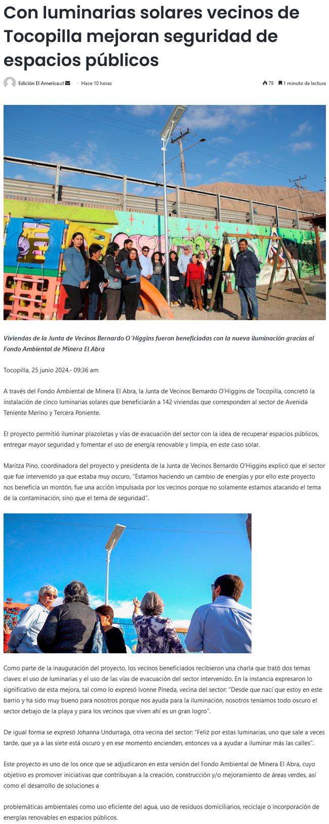 Inauguran luminarias solares en el sector “Bernardo O’Higgins” - (La Estrella)