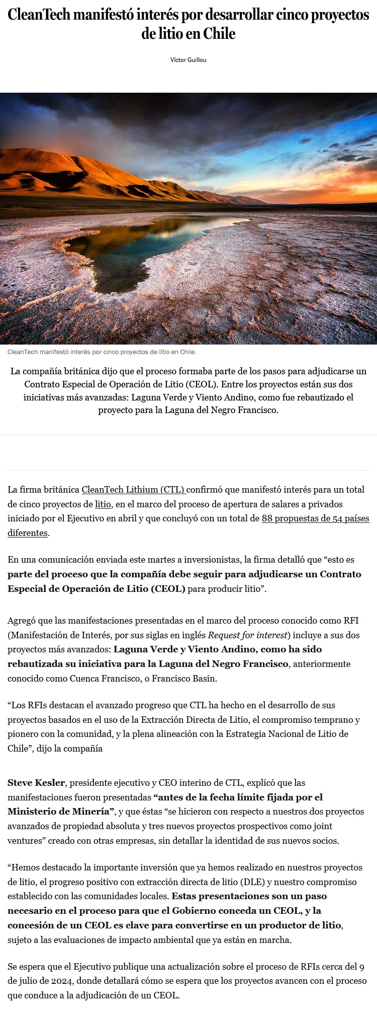 CleanTech, interesado en cinco proyectos - (El Mercurio de Santiago)