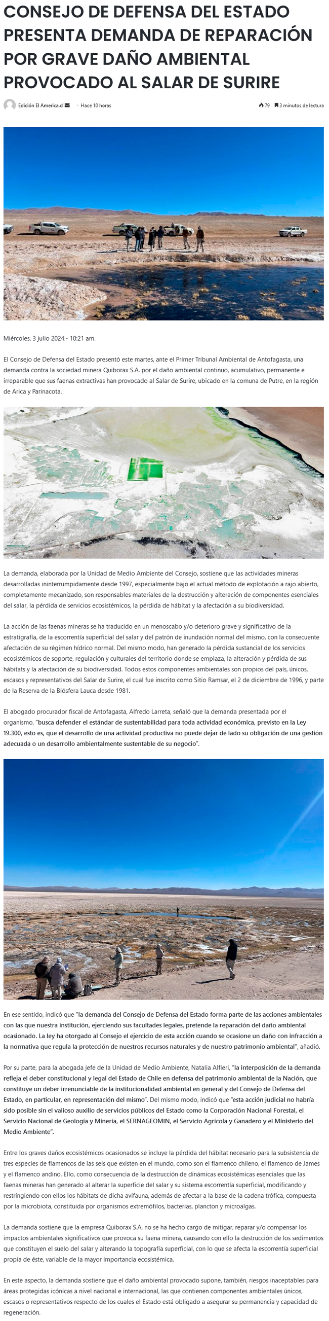 CDE demanda a Quiborax por 37 años de daño ambiental “irreparable” en Salar de Surire - (Diario Financiero)