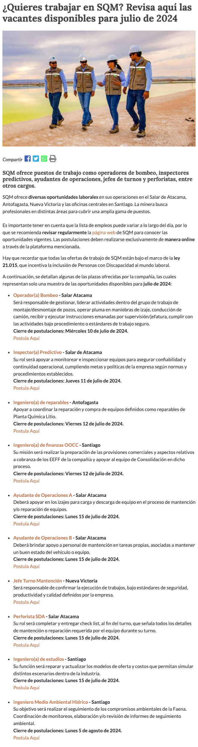 «Oportunidades de empleo en SQM: vacantes disponibles para julio 2024» - (redimin)