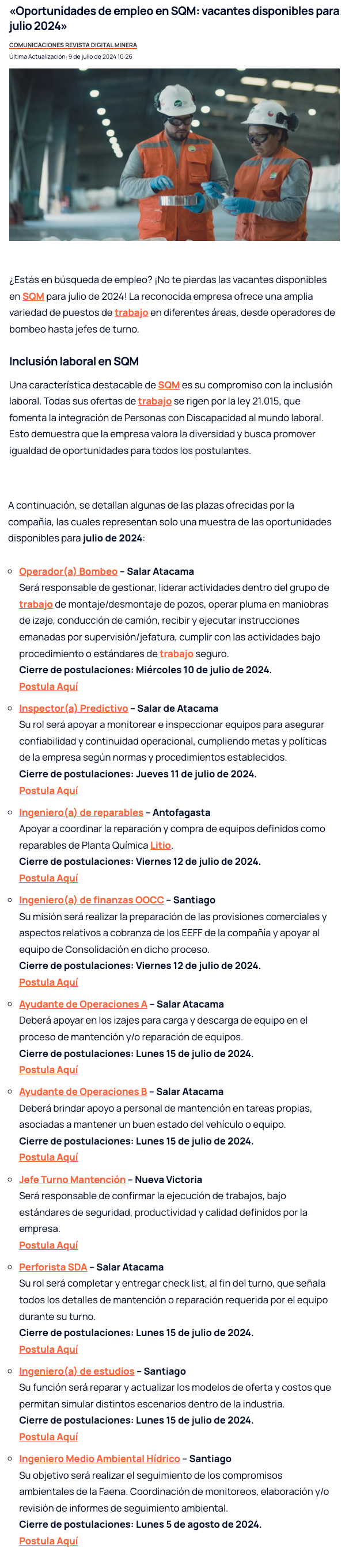 ¿Quieres trabajar en SQM? Revisa aquí las vacantes disponibles para julio de 2024 - (reporteminero)