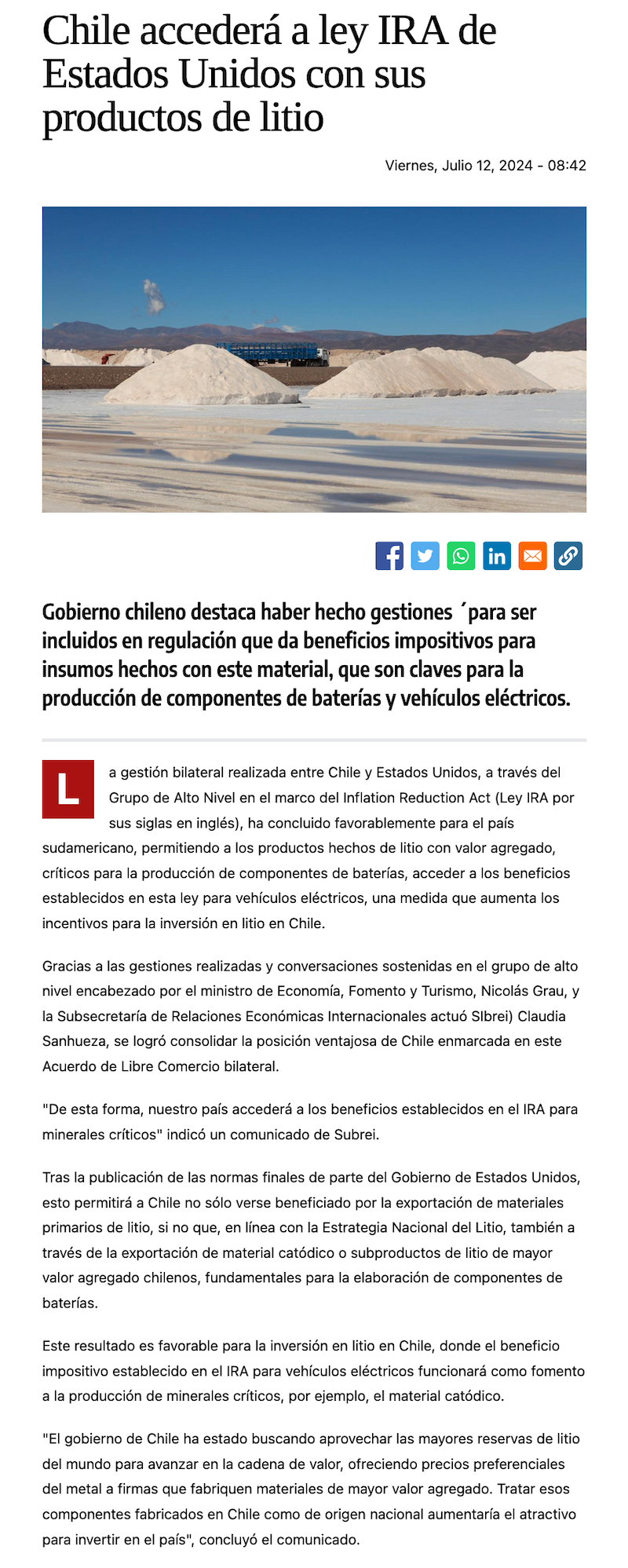 EEUU otorga exenciones fiscales y refuerza interés en litio chileno - (elperiodista.cl)