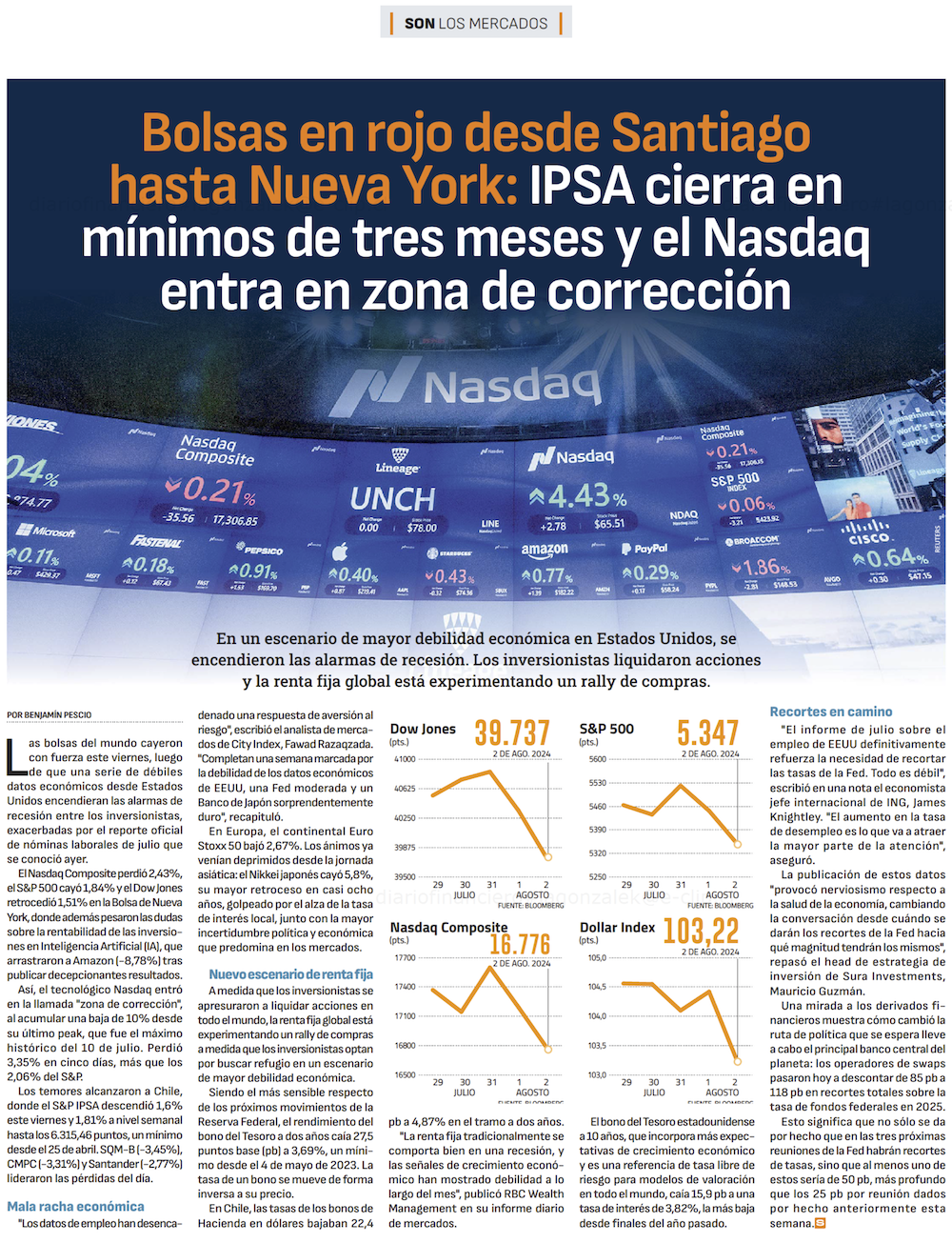 También la chilena: Bolsas del mundo se tiñen de rojo ante los temores de recesión en EE.UU. - (emol)