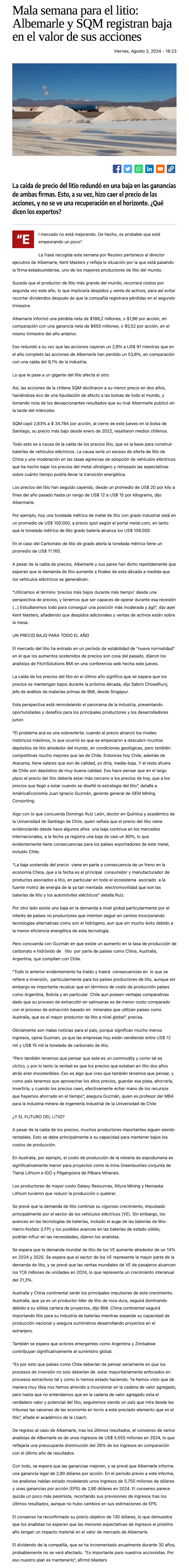 SQM se hunde tras resultados del mayor productor de litio del mundo - (tendenciashoy.cl)