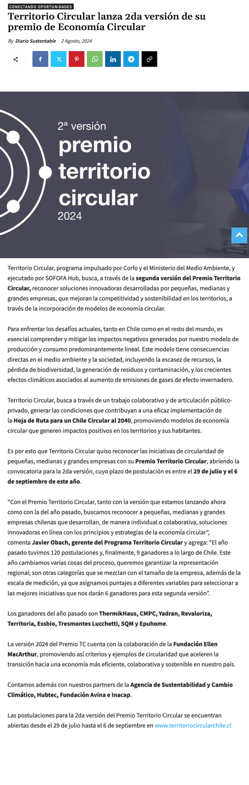 Territorio Circular lanza 2da versión de su premio de Economía Circular - (portalinnova.cl)