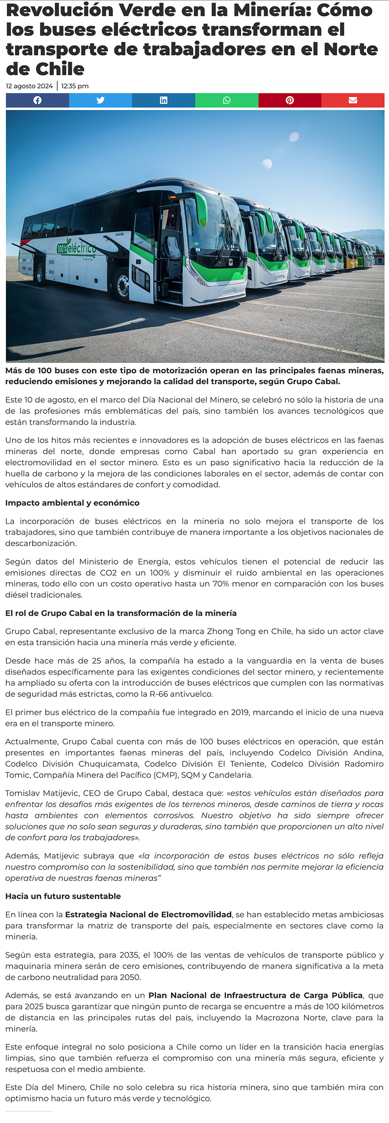 Revolución Verde en la Minería: Cómo los buses eléctricos transforman el transporte de trabajadores en el Norte de Chile - (Nostálgica Online)