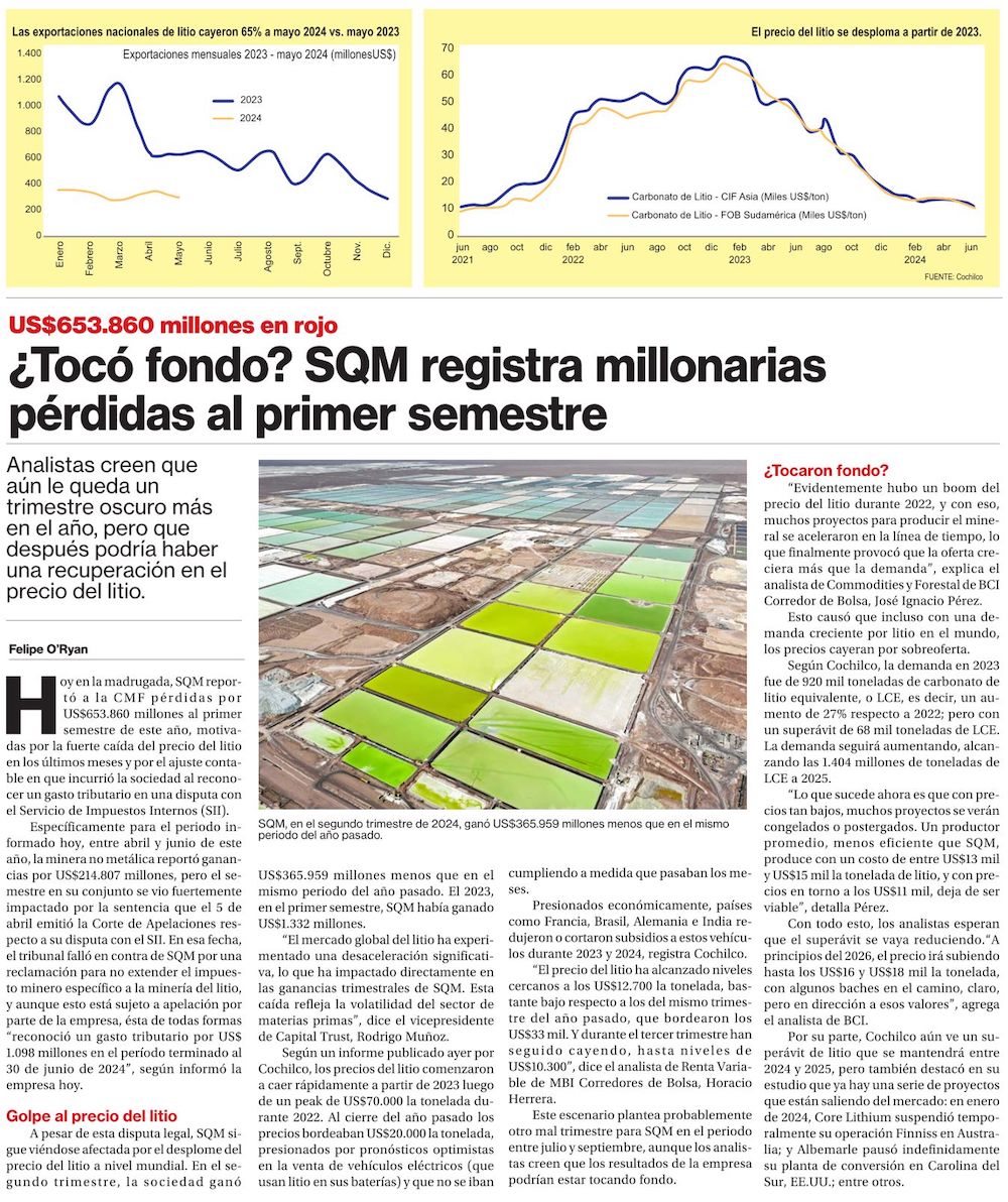 SQM reporta pérdidas por US$ 655 millones en primer semestre - (Hoy x hoy)