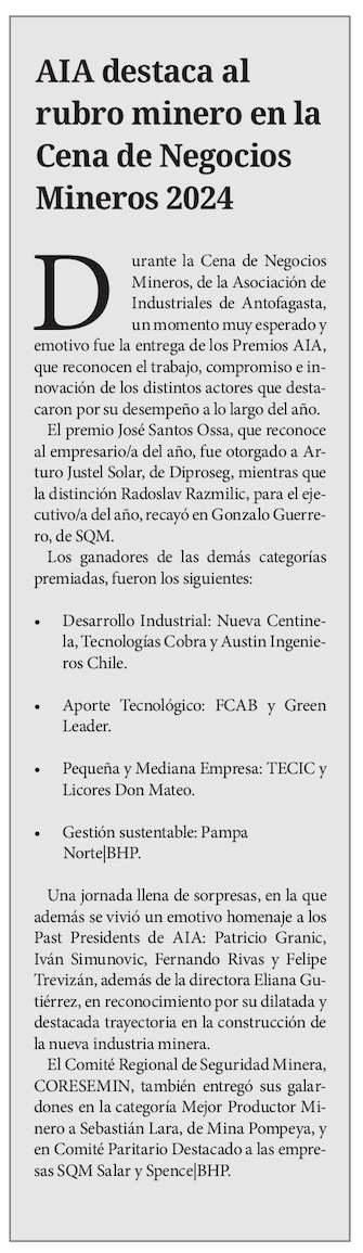 AIA destaca al rubro minero en la Cena de Negocios Mineros 2024 - (reporteminero)