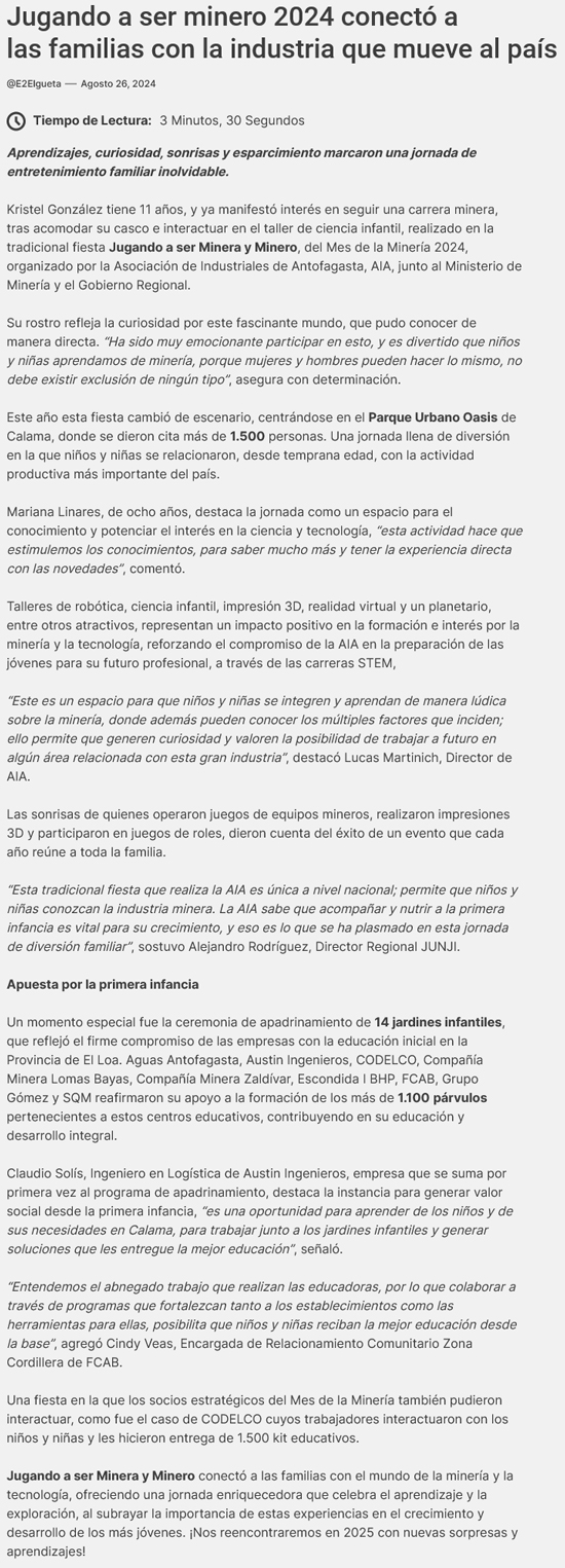 Jugando a ser Minera y Minero 2024 conectó a las familias de Calama con la industria que mueve al país - (reporteminero)