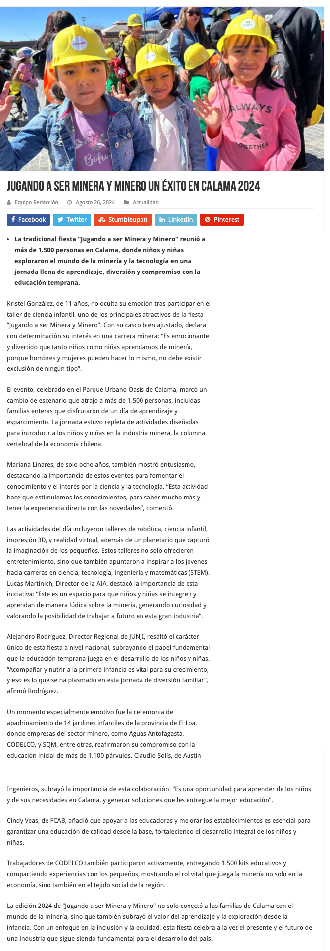 Jugando a ser minera y minero 2024 conectó a las familias de Calama con la industria que mueve al país - (diarioangamos)