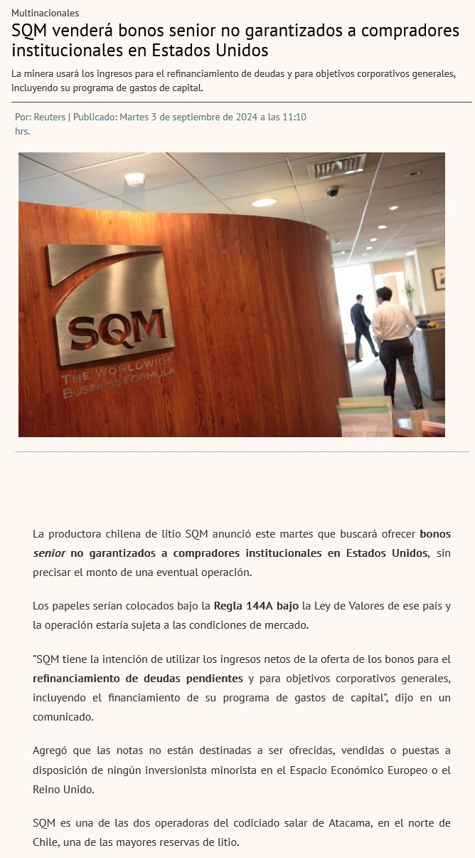 SQM planea emisión de bonos en Estados Unidos - (Pulso)