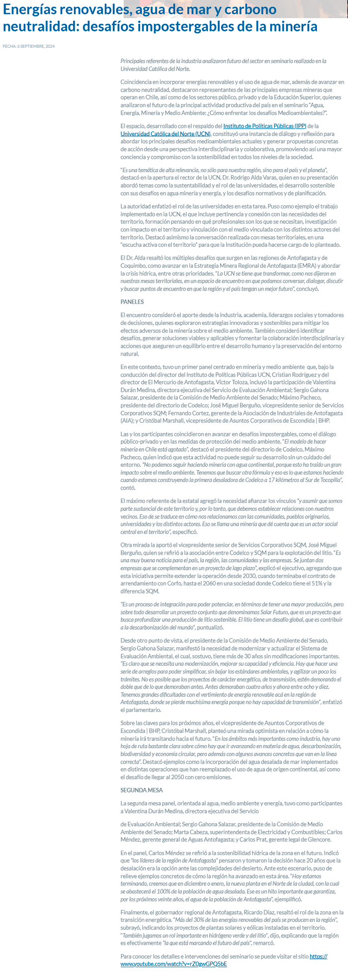 Energías renovables, agua de mar y carbono neutralidad: desafíos impostergables de la minería - (antofagastanoticias)