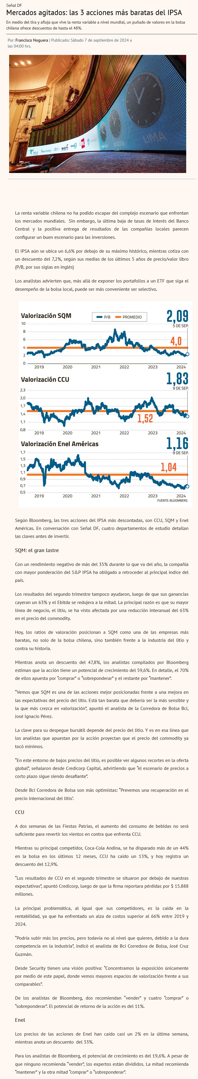 Mercados agitados: las 3 acciones más baratas del IPSA - (Diario Financiero)