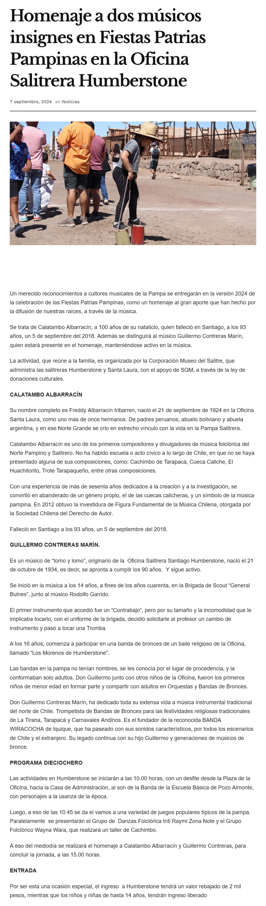 Durante la celebración de las fiestas patrias pampinas, en salitrera Humberstone, se homenajeará a dos insignes músicos - (El Longino de Iquique)