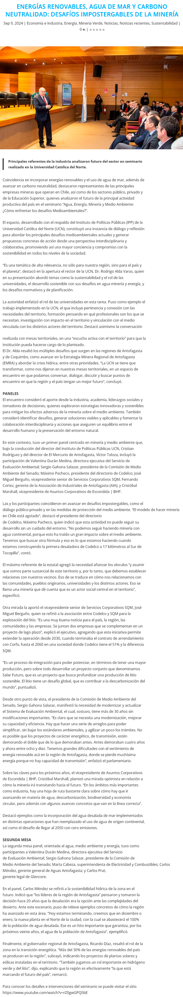 Energías renovables, agua de mar y carbono neutralidad: desafíos impostergables de la minería - (regionesnoticias.cl)
