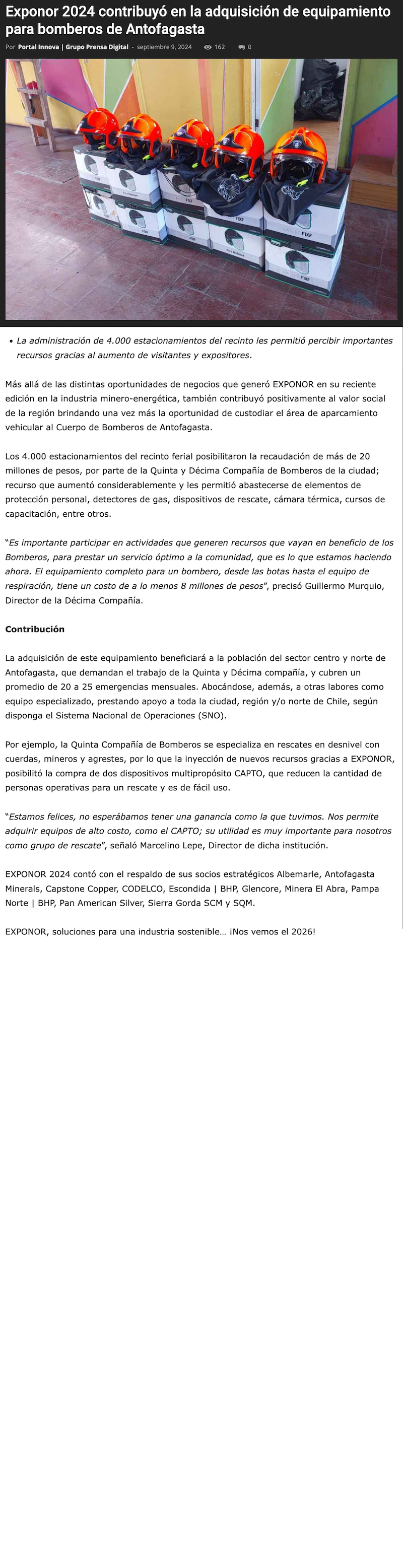 EXPONOR 2024 contribuyó en la adquisición de Equipamiento para Bomberos de Antofagasta - (redimin)
