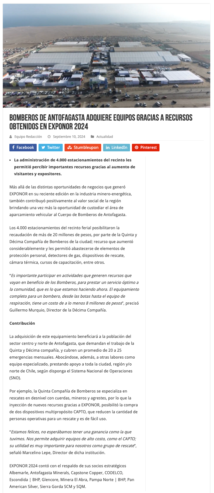 Exponor 2024 colabora en la adquisición de equipamiento para bomberos de Antofagasta - (mch.cl)