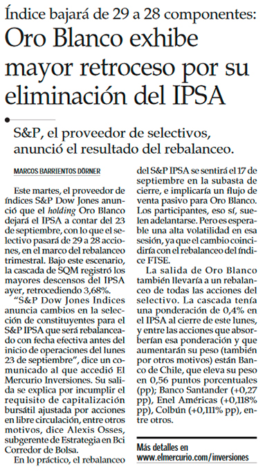 Acción Oro blanco de SQM dejará el IPSA y el índice queda con 28 acciones - (DF Online)