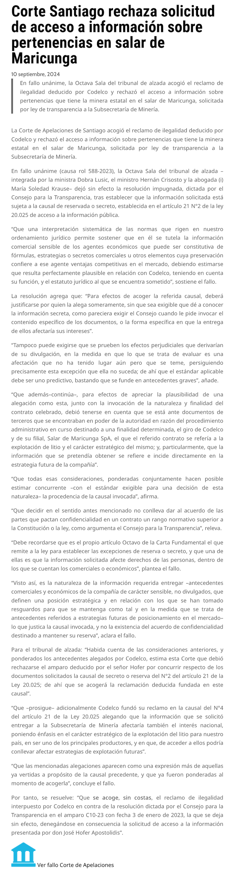 Tribunal rechaza conocer datos de Codelco en salar de Maricunga - (Pulso)