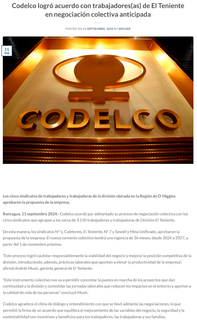 Sindicato 5 de Codelco El Teniente aprueba negociación colectiva anticipada - (El Tipógrafo)