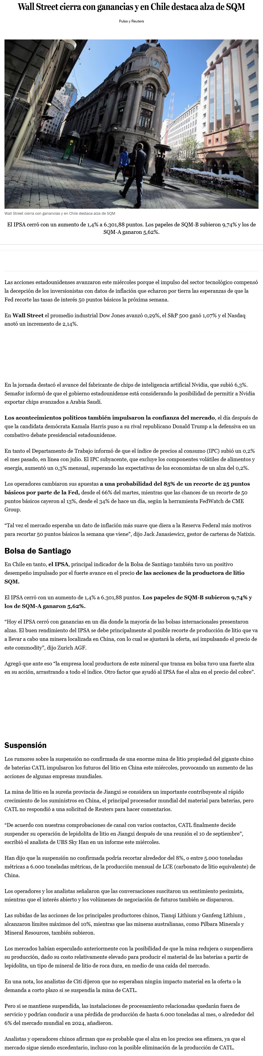 SQM se dispara 10% en bolsa y cerra su mejor sesión desde marzo de 2022 tras fuerte alza en los precios del litio - (DF Online)
