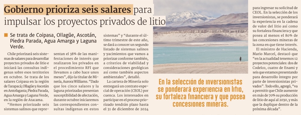 Los seis elegidos: Gobierno revela los salares disponibles para privados - (La Segunda)