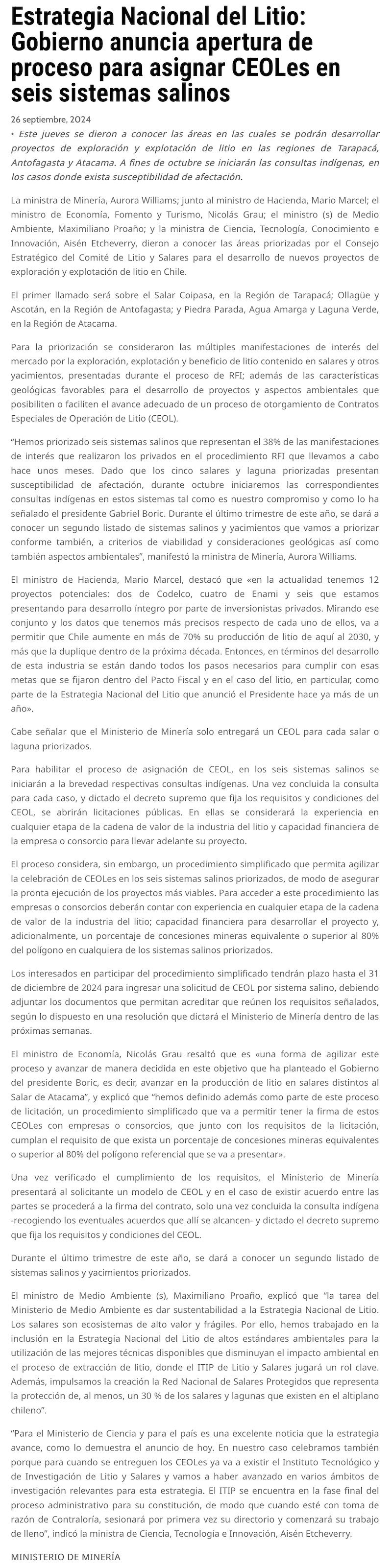 Considera dos de la región de Antofagasta: abrirán proceso para asignar contratos de operación de litio en salares - (timeline)