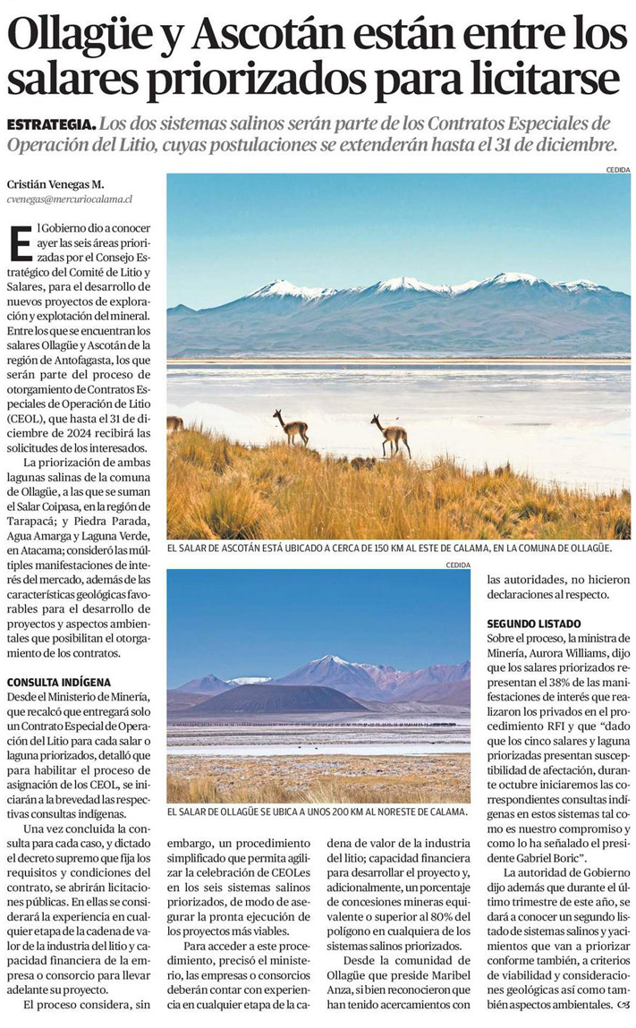 Estrategia Nacional del Litio: Gobierno anuncia apertura de proceso para asignar CEOLes en seis sistemas salinos - (Adprensa.cl)