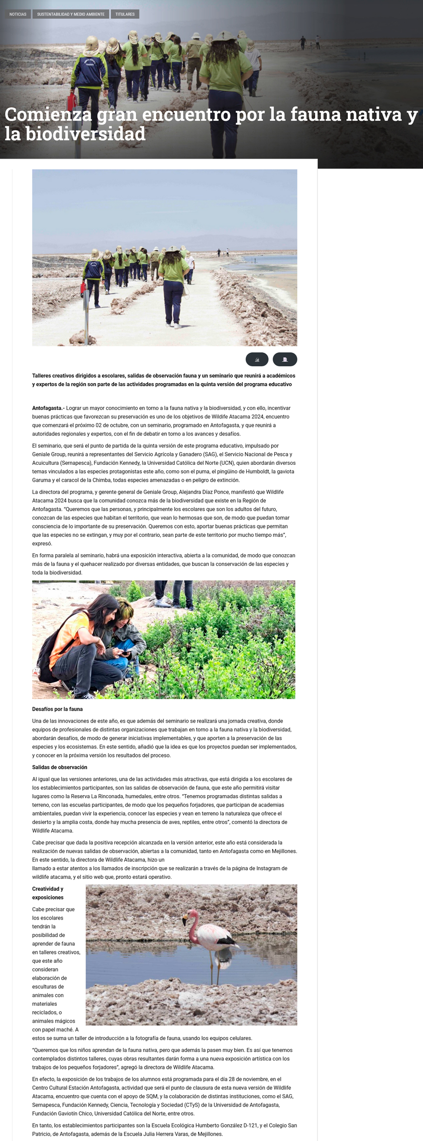 Wildlife Atacama 2024 impulsará la preservación de fauna nativa con seminarios, exposiciones y talleres en Antofagasta - (elreferente.cl)